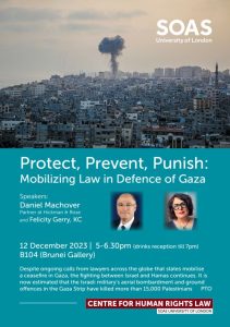 On the 12 December Felicity and Daniel Machover spoke at the Centre for Human Rights Law SOAS University of London