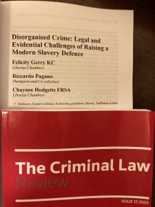 I am thrilled and honoured to announce that my article “Disorganised crime: the legal and evidential challenges of raising a
